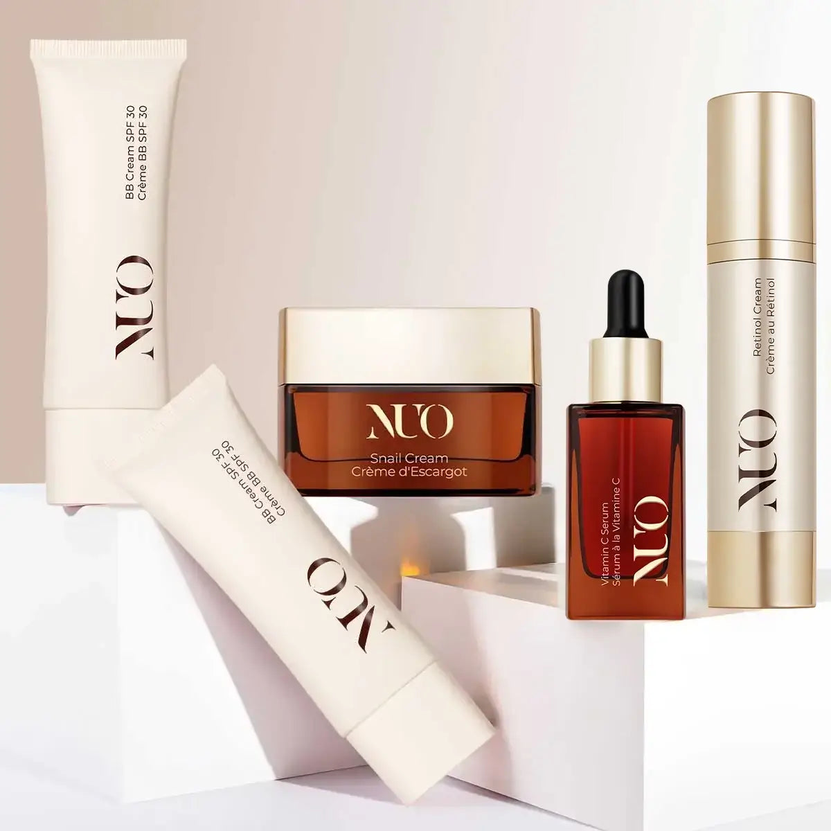 Experiența completă Nuoderm într-un singur set, cu patru pași simpli spre perfecțiunea pielii: rutina de îngrijire nu trebuie să fie complicată pentru a oferi rezultate remarcabile.